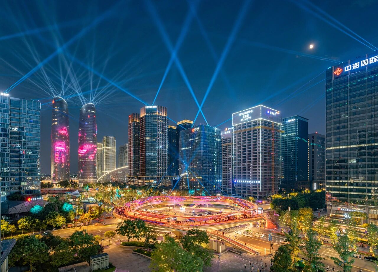 作为成都新晋夜景“顶流”,金融城双子塔绝对是必打卡之地。两栋高楼化身巨型城市幕布,每晚通过酷炫的LED灯光系统,上演一场场声光结合的视觉盛宴。