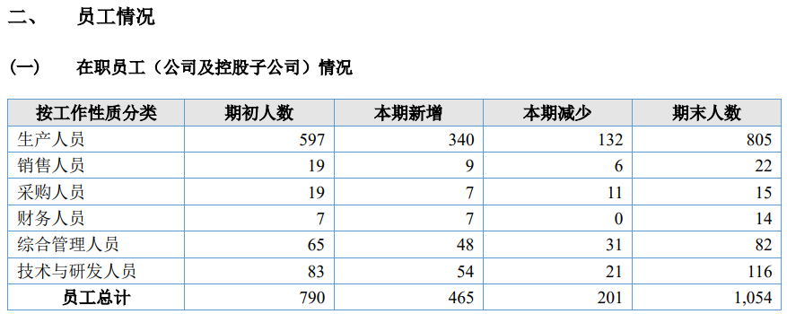不仅如此,《审核问询函的回复》第238页披露,2022年和2023年公司的直接人工成本对应的人工数量分别为559人和810人。而另一边,新富科技此前发布的2023年年报则披露,2022年和2023年的生产人员为597人和805人,均与《审核问询函的回复》公布的数据存在差异,且呈现一增一减的不同差异方向。
